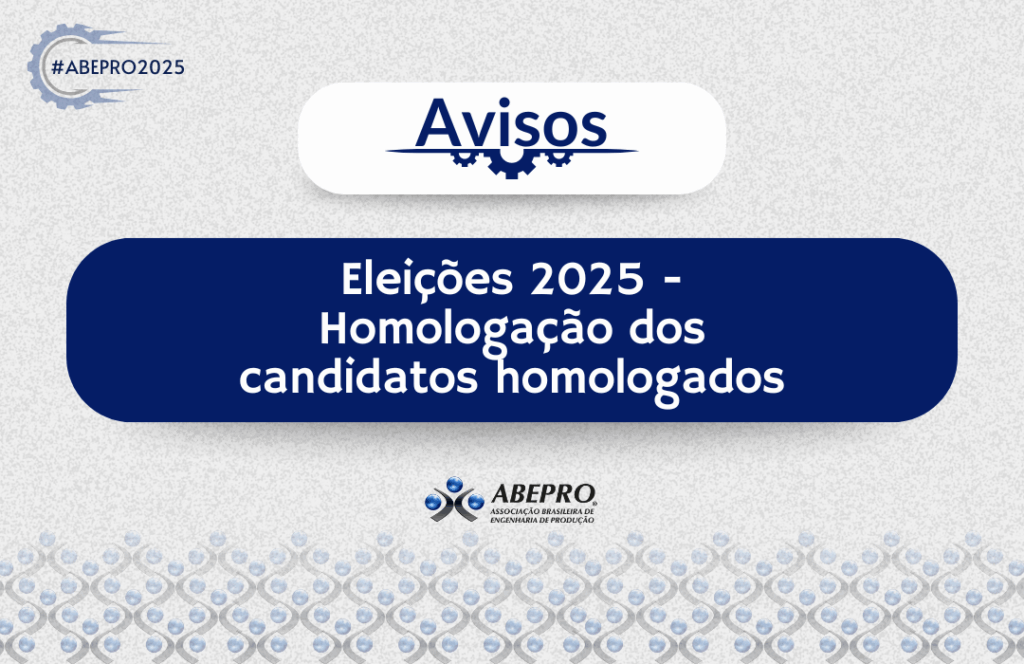Eleições 2025 – ATA DE HOMOLOGAÇÃO DE INSCRIÇÃO PARA O PROCESSO ELEITORAL DA ASSOCIAÇÃO BRASILEIRA DE ENGENHARIA DE PRODUÇÃO – GESTÃO 2026/2027 Aos vinte dias do mês de setembro de 2025, reuniram-se de forma online os professores – Aline Dresch (Unisinos), Rodrigo Goyannes Gusmão Caiado (PUC-Rio) e Vitor William Batista Martins (UEPA) para validar as […]