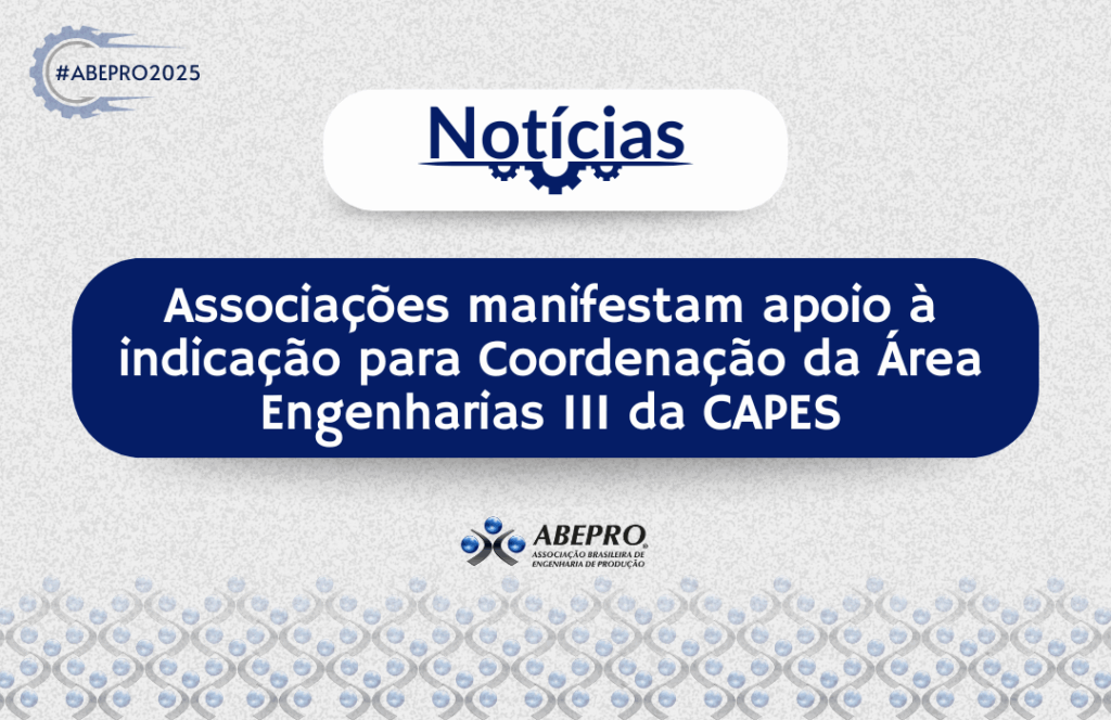 As Associações ABCM, ABEPRO, ANPEPRO e SOBRAPO manifestaram apoio conjunto à indicação dos professores Leandro Alcoforado Sphaier, Danielle Costa Morais e Luiz Felipe Roris Rodriguez Scavarda do Carmo, nesta ordem de preferência, para a Coordenação da Área Engenharias III da CAPES, no âmbito do Edital 18/2025. A iniciativa reforça a busca pela excelência acadêmica, o […]