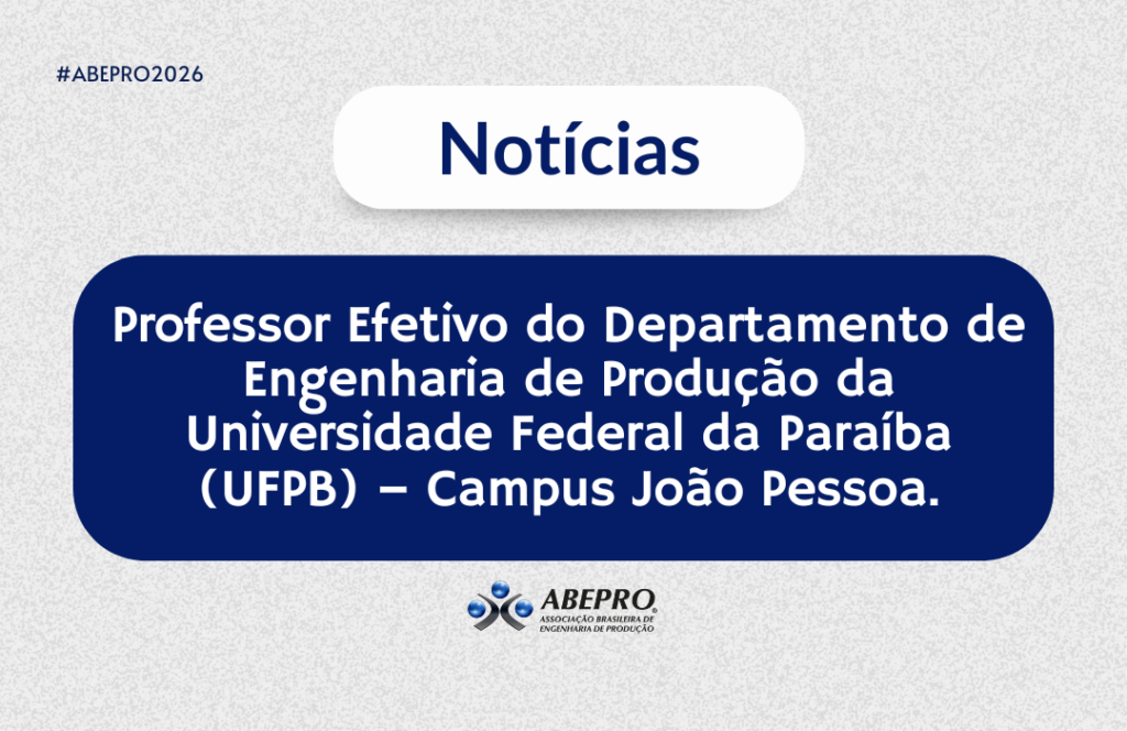 Edital – Professor Efetivo do Departamento de Engenharia de Produção da Universidade Federal da Paraíba (UFPB) – Campus João Pessoa.